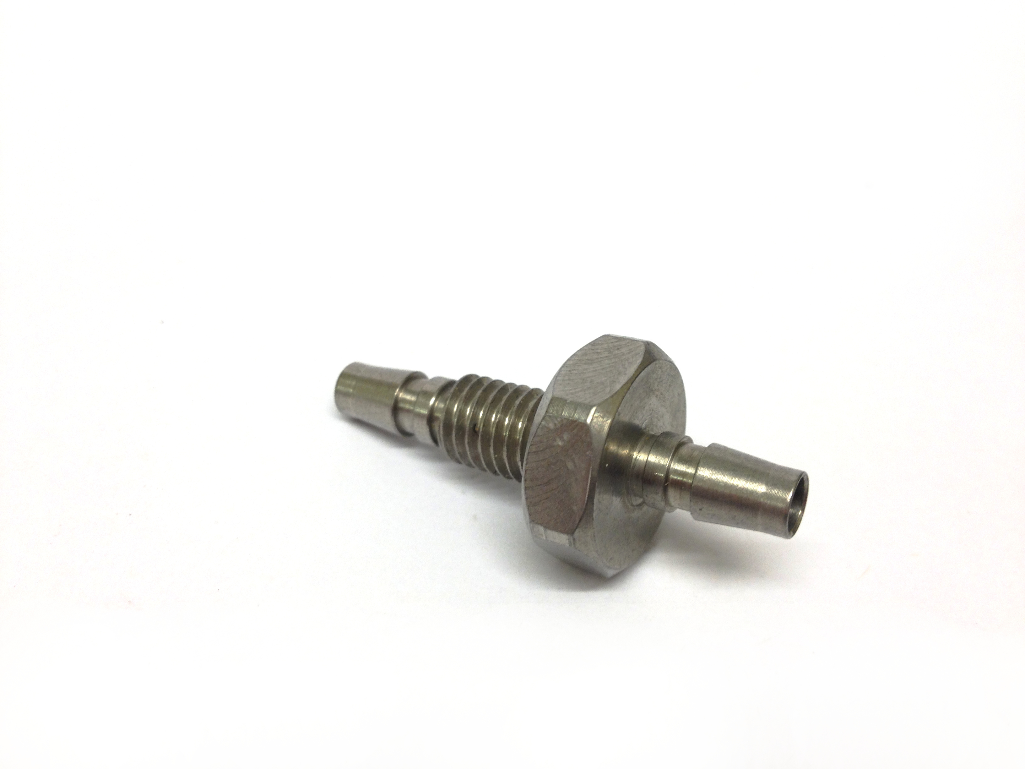 Beta Engineering Services machine several varieties of bulkhead fittings for various customers of ours for use in hydraulics, rail and marine applications. Pictured here is a 316 stainless steel fitting made from 20mm diameter round bar.